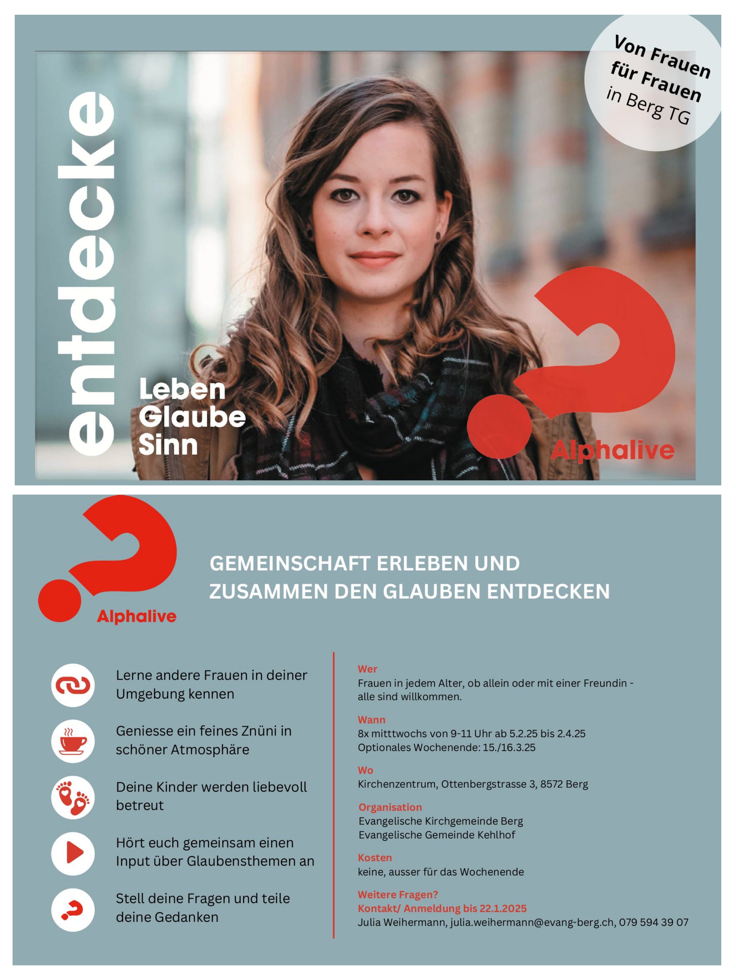 Am Mittwoch, 5. Februar 2025, beginnt ein Alphalive-Kurs für Frauen in Berg