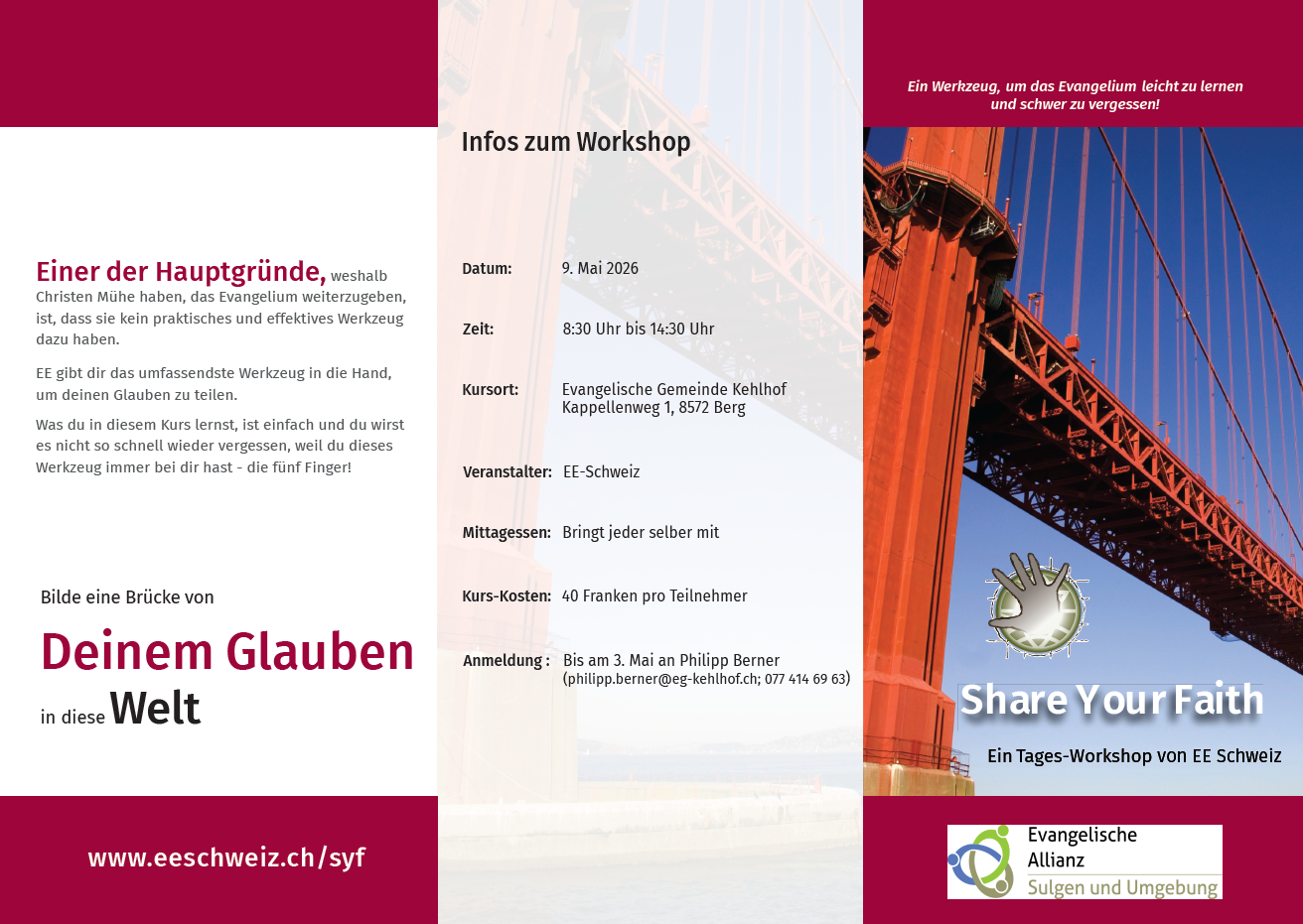 Anmeldung : Bis am 3. Mai an Philipp Berner (philipp.berner@eg-kehlhof.ch; 077 414 69 63)