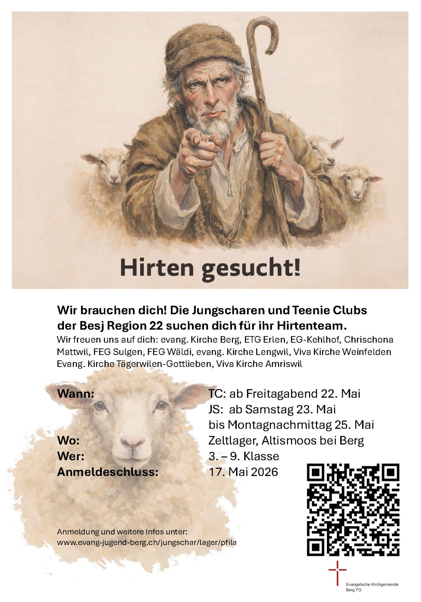 Wir brauchen dich! Die Jungscharen und Teenie Clubs der Besj Region 22 suchen dich für ihr Hirtenteam.